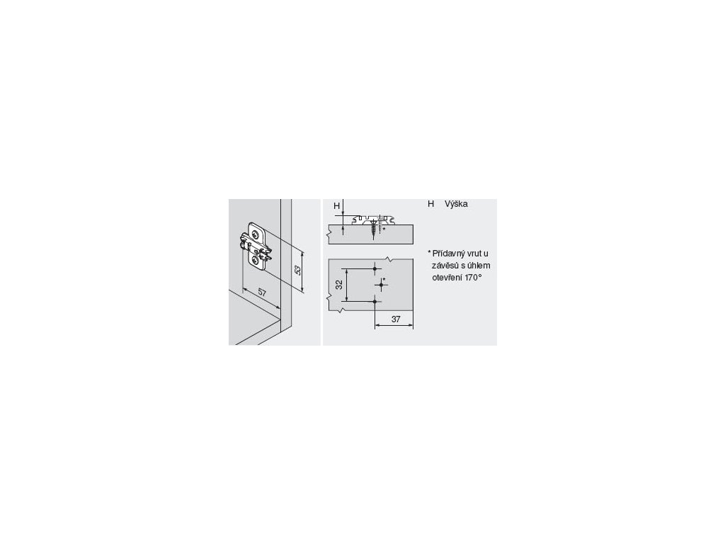 BLUMOTION 970.1201 Tvar montážní podložka: přímý.Způsob upevnění: Šrouby.Vzdálenost přední hrany korpusu k...