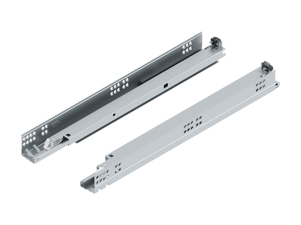 Skrytý celovýsuv TANDEM pre drevené zásuvky z materiálu s hrúbkou 11-16mm s mäkkým dorazom pri otváraní a integrovanou funkciou TIP-ON, ktorá zabezpečuje mechanické otváranie.