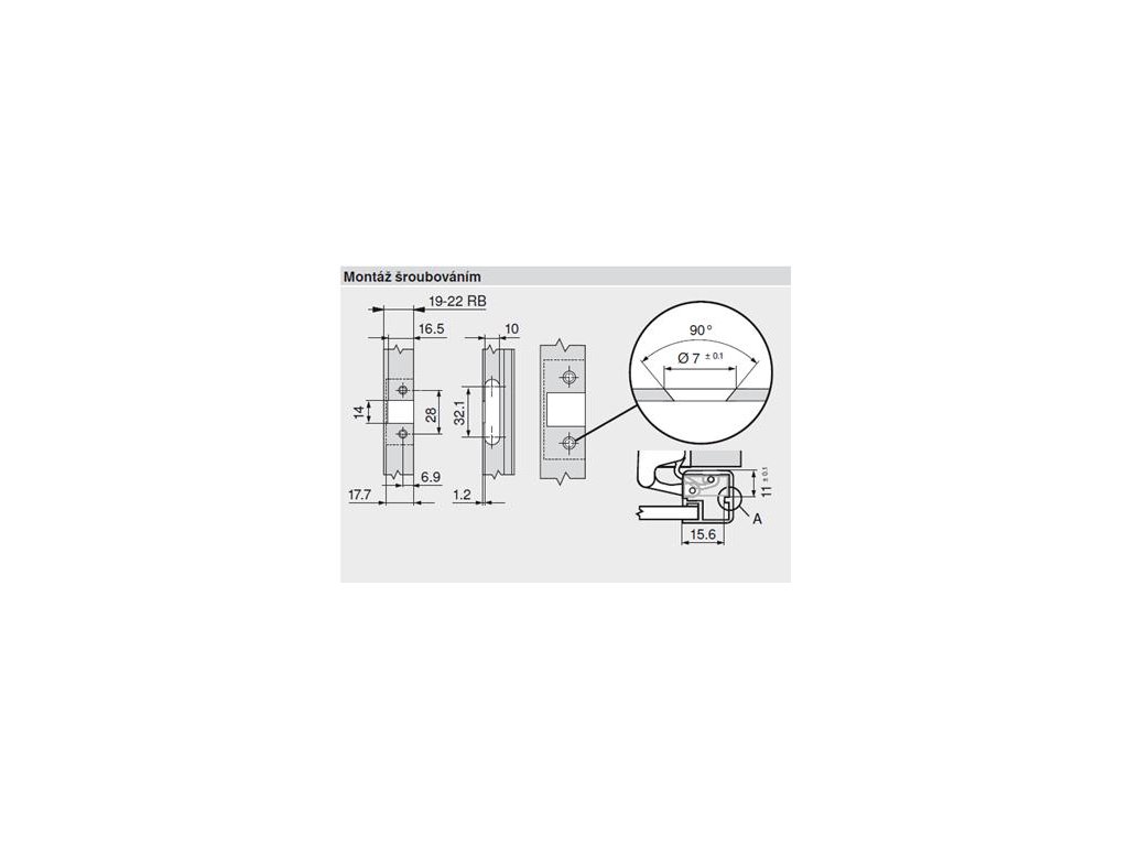 Pre záves 170° naložený 71T6550 - 13041 a polonaložený 71T6650 - 12045.Naklapáva sa na ramienko závesu.