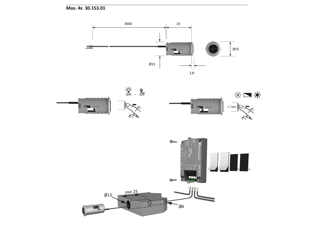 "Samostatne nefunkčné. Nutné objednať 467280 HAL-Master jednotka 500W. ✅ 230V." K riadiacej jenotke je možné pripojiť až 4 rovnaké vypínače ✅ Kombinácia rôznych typov vypínačov nie je možná Zapojenie musí byť prevedené výhradne podľa návodu, je zakázané zasahovať do inštalácia. Stmievanie nie je u tejto riadiacej jednotky možné, spína vždy napätie 230 V. Spotreba v pohotovostnom režime: 0,5 W.