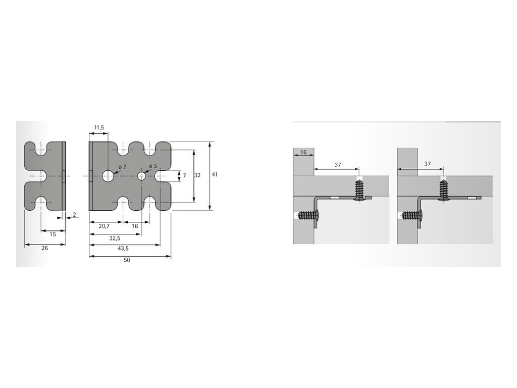 Prachovo šedý.Montáž pomocou skrutky do drevotriesky pr.3.5mm alebo pr.4mm alebo pomocou eurosktrutky.Materiál...