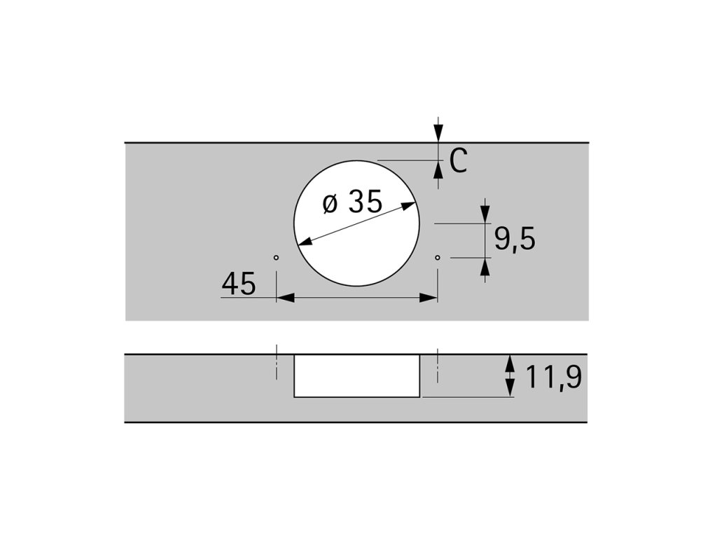 Clip Top záves s uhlom otvorenia 110°, s možnosťou použiť ho k pántu 12049.Podložky sú zhodné s existujúcimi.