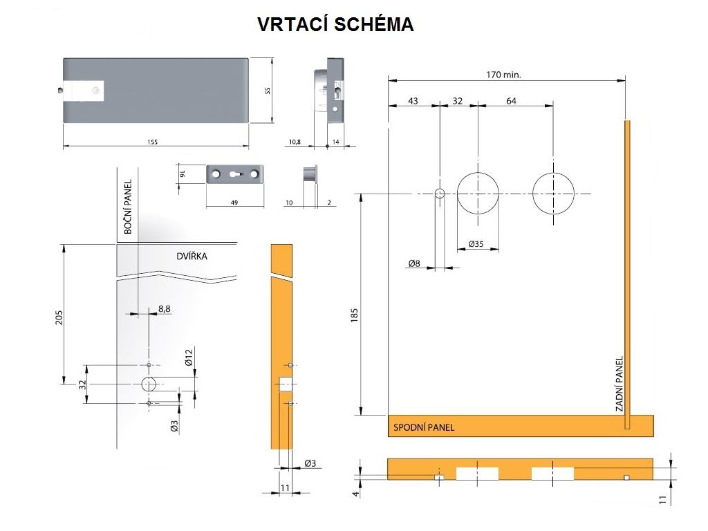Mechanizmus pre bezpružinové závesy.Pre naložené dvierka do výšky 1300mm.Pre závesy bez pružín.K zavŕtaniu pri...