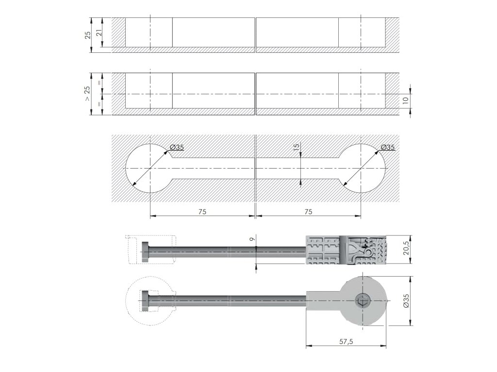 Min.hrúbka prac.dosky - 25mm.Rozteč (stred.✅ Priemer 35mm) 2x32 -+ 0✅ 3mm (64mm) drážka šírka 15mm✅ Zahĺbenie 21mmlen...