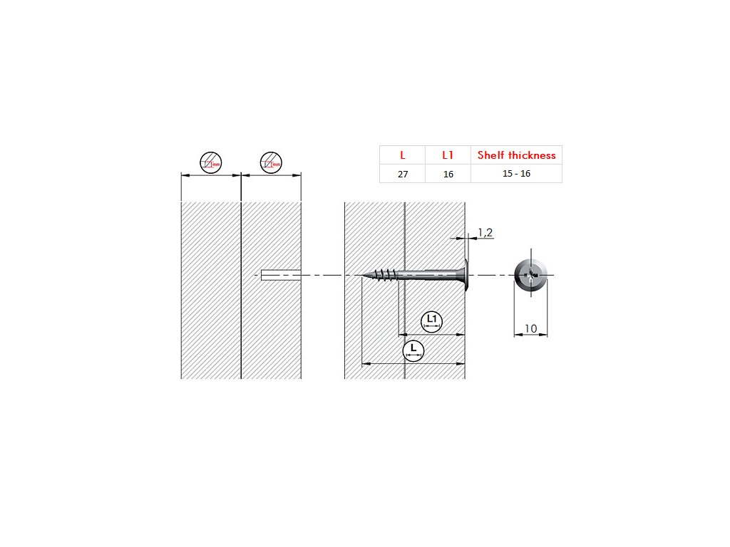 | Typ drážky skrutky: | S krížovou drážkou |