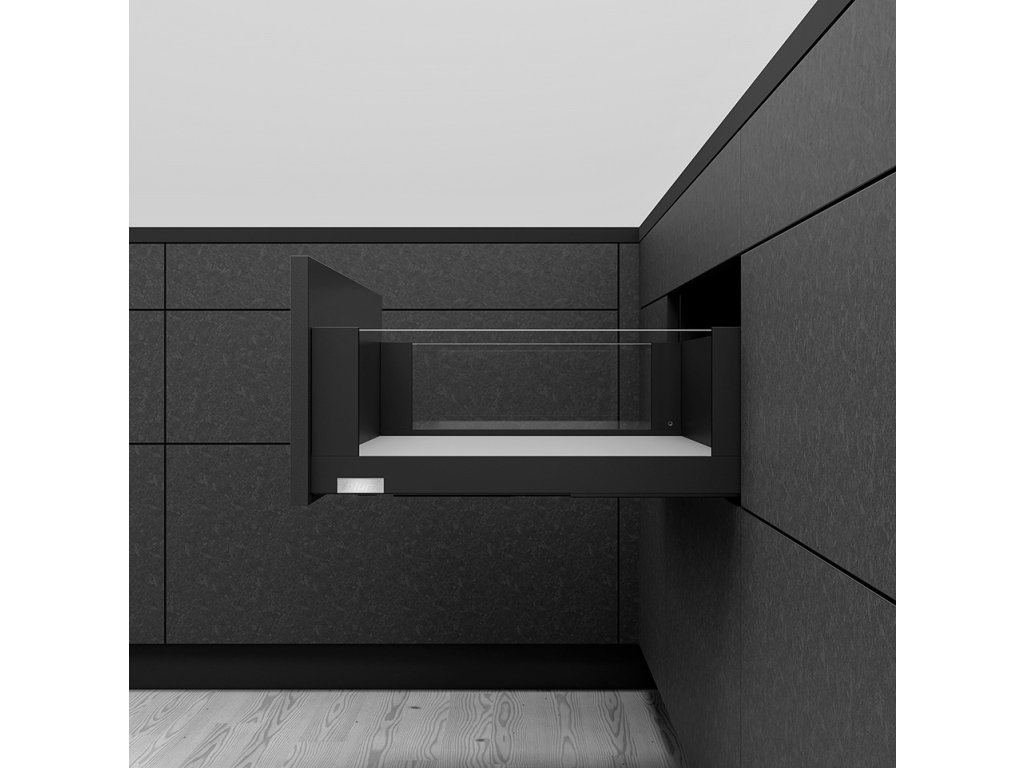 K-BLUM Legrabox C Free 500mm/70 kg, Tip-on, karbon čierná CS-M, vnútorná, sklo