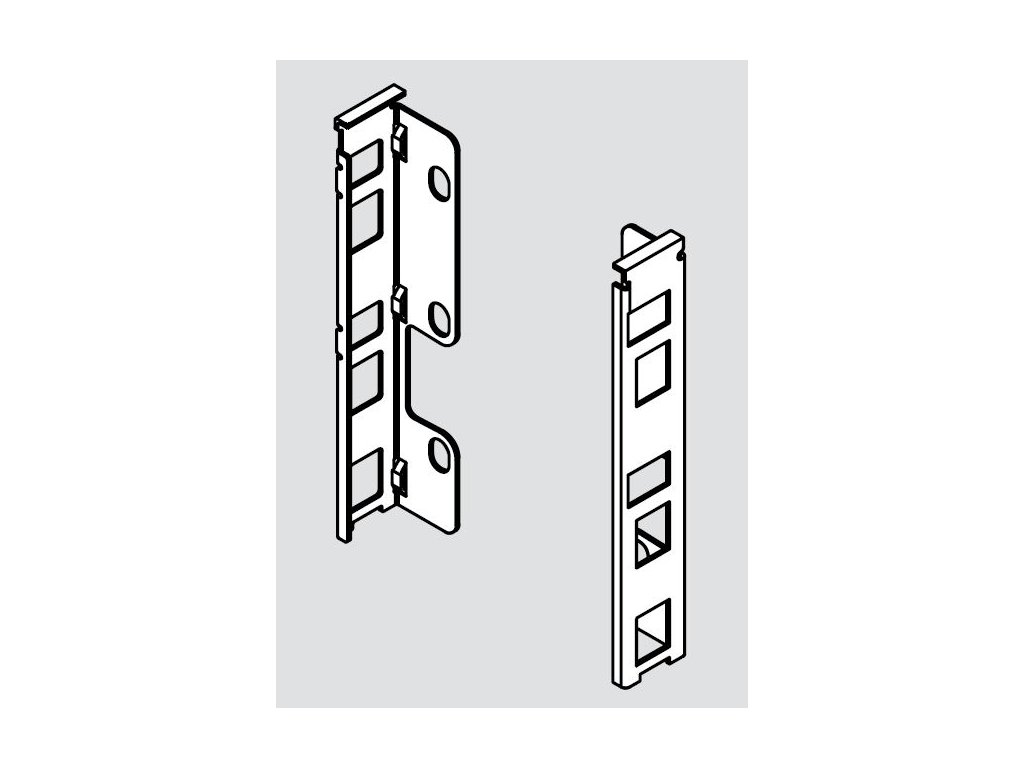 Ide o čelný panel (prírez LW-126mm) bez drážky (pre zásuvky s čelným relingom) alebo s drážkou (pre zásuvky s čelným sklom) a v prípade potreby úchytový prvok: čelný reling (prírez LW-90mm), nízke čelné sklo (10 x 70 x LW-80) alebo vysoké čelné sklo (10 x 138 x LW-80).