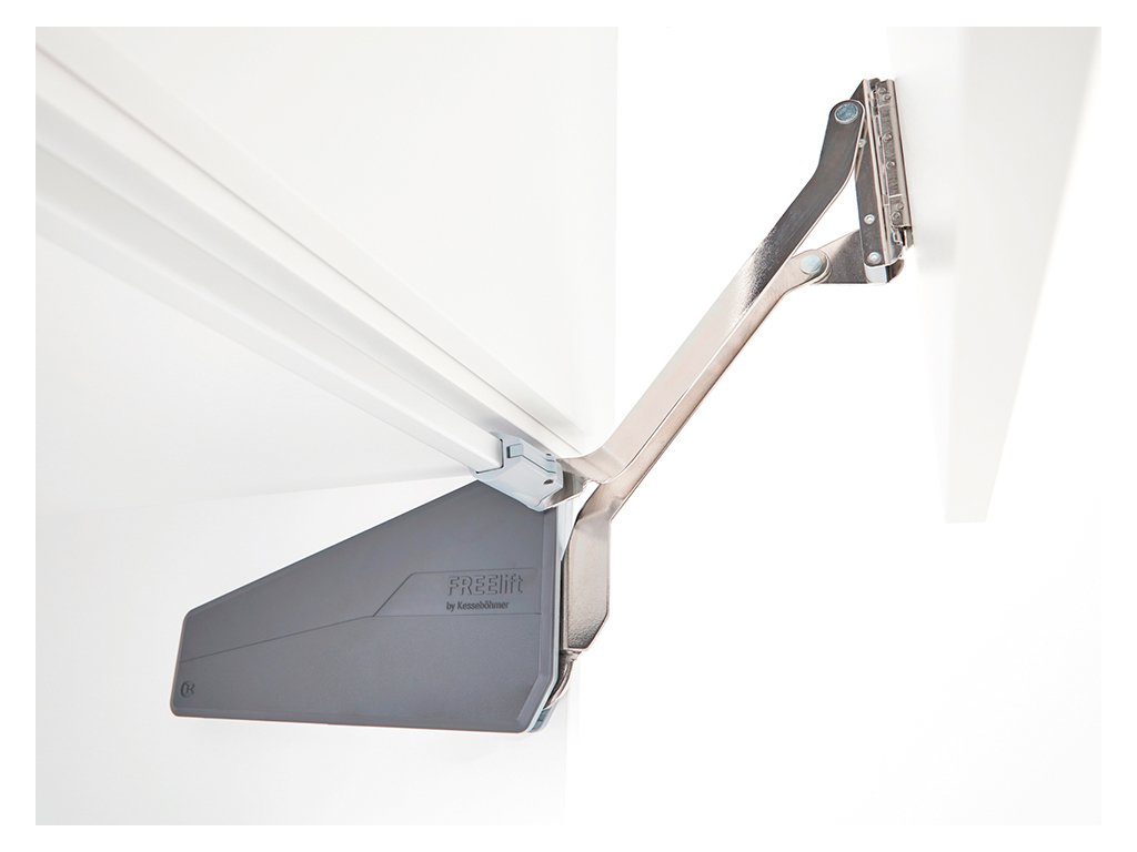Mechanizmus pre bezpružinové závesy.Prachovo šedý.Pre naložené dvierka do výšky 1300mm.Pre závesy bez pružín.K...