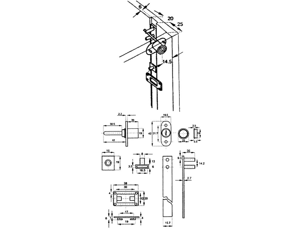 Obsahuje: zámok 1x. ✅ Ozdobný krúžok (rozetu) 1x ✅ 1x zamykaciu tyč 600mm ✅ 2x vedenie tyče ✅ Poistný kolík 3x 1nn ✅ 2x kľúč Pre centrálne uzamknutie zásuviek kontajnerov. Dĺžka 600mm. ✅ Zamykanie v hornej zásuvke ✅ Otvor pre osadenie 17mm ✅ Vhodné pre hrúbku materiálu 18-20mm