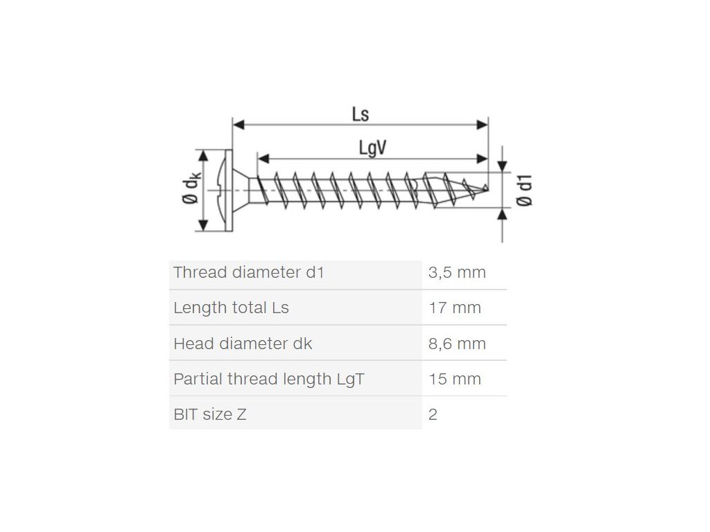 | Typ drážky skrutky: | S krížovou drážkou |