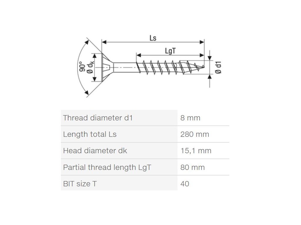 | Prevedenie skrutky: | Čiastočný závit |