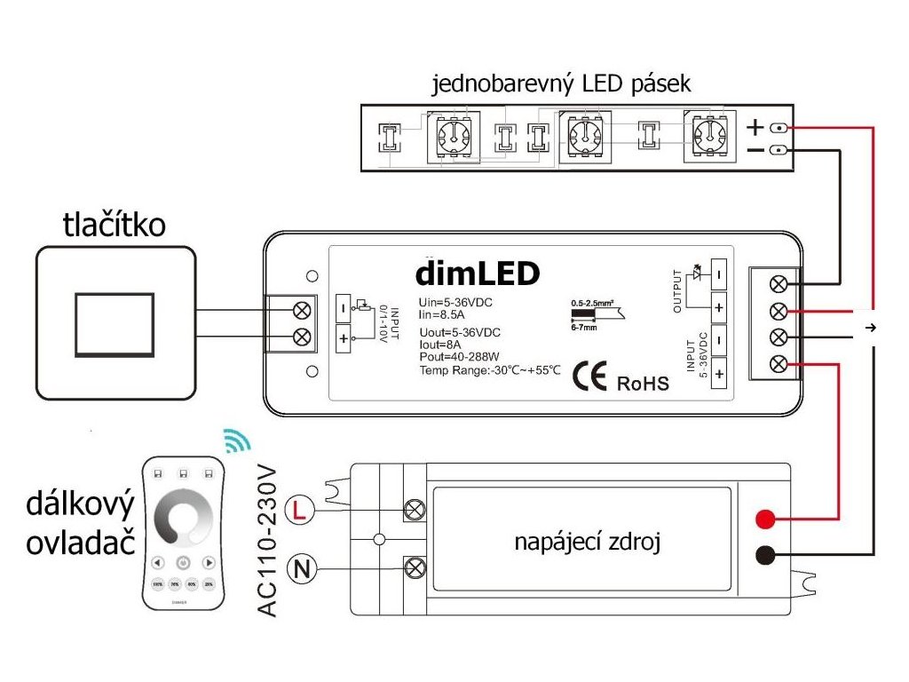 Prijímač je kompatibilný so všetkými CCT ovládačmi rady dimLED !!! Pre ovládanie viacerých okruhov je nutné použiť jeden prijímač na každý okruh.