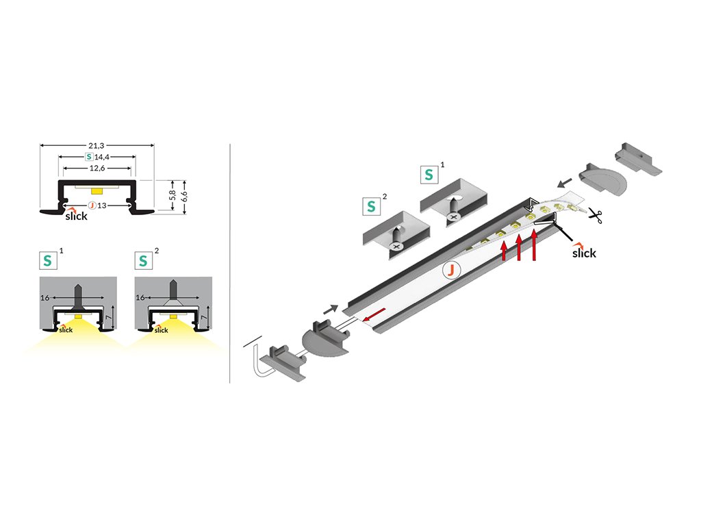 ALU profil pre LED pásiky. K týmto profilom sú k dispozícii krytky, ktoré je možné inštalovať zhora - zaklapávacie.