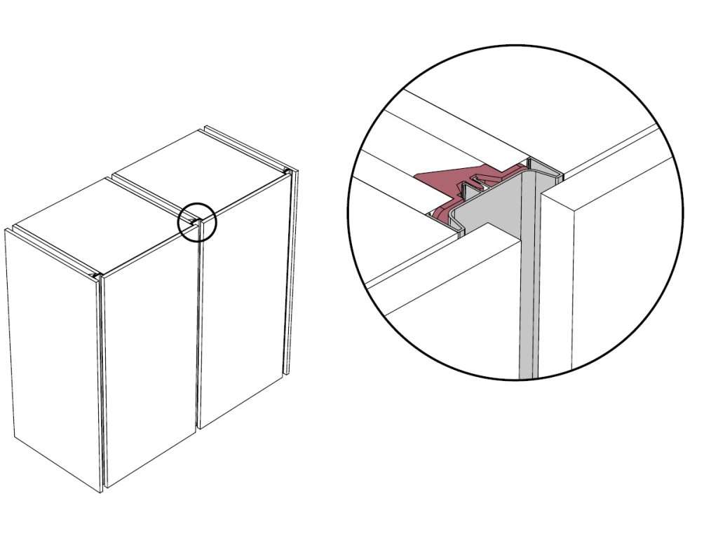 Vertikálny stredový profil Gola Snap on pre inštaláciu do korpusovej zostavy o hrúbke 18mm.