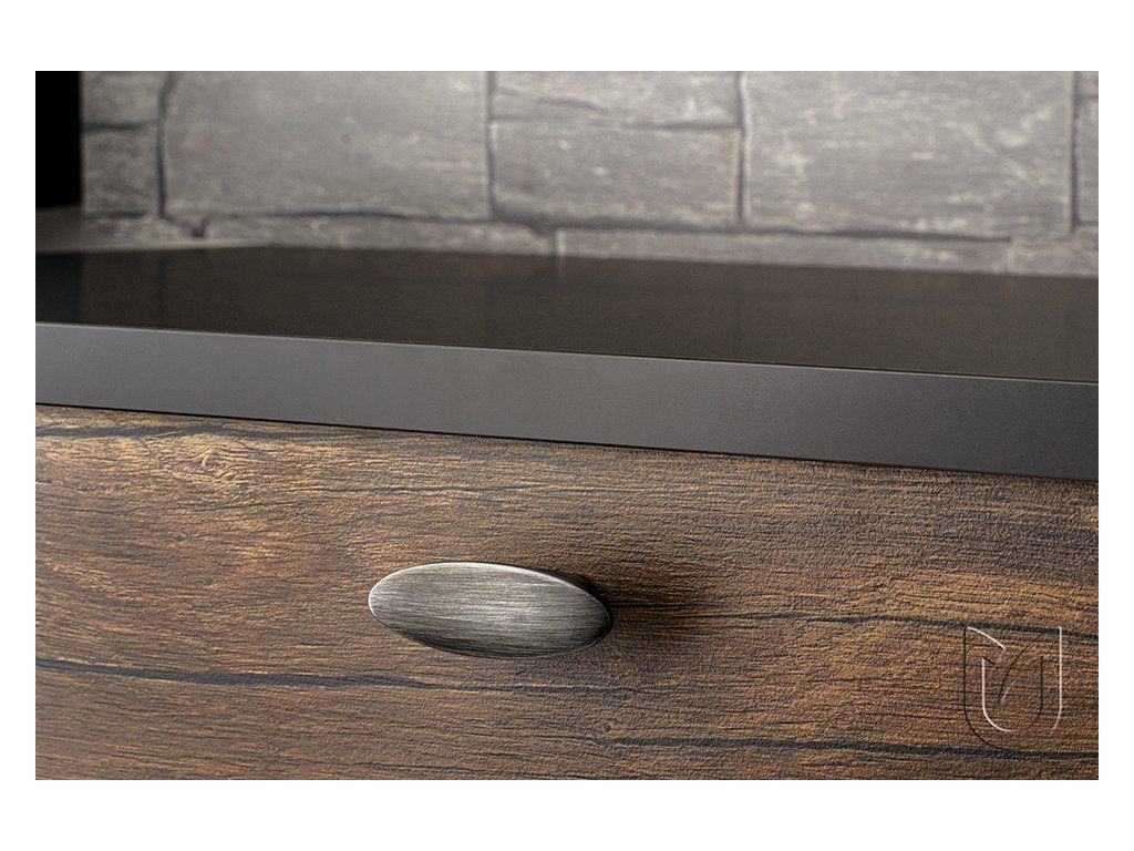 Knopka oválneho tvaru Graffito v staročiernej farbe av prevedení tmavý lesklý nikel má ergonomický tvar pre dobré uchopenie do dlane. V staročiernej verzii sa hodí na rustikálny typ nábytku, ale aj aktuálne, veľmi trendové dekory dreva s výraznou kresbou. V prevedení lesklého niklu je úchytka vhodná na kombináciu s unidekormi, tmavým drevom, ale aj pre kontrast s bielou doskou. Využitie knopky je mnohostranné. Od nábytku v spálni cez rôzne komody, skrinky, kancelársky nábytok až po využitie v štýlovom salóne alebo hoteli.