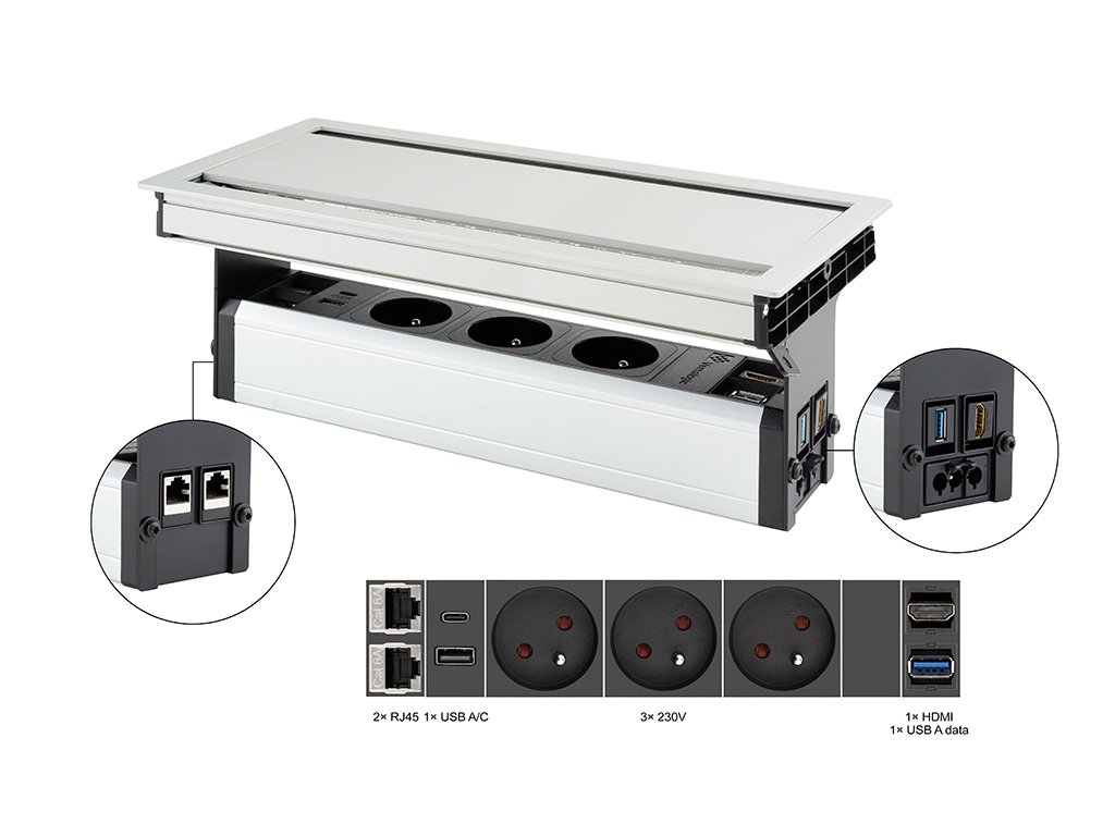 VersaFlap dual 2.0, 3x230V, 2xRJ45, 1xHDMI, 1xUSB A/C, 1xUSB data, čierna matná