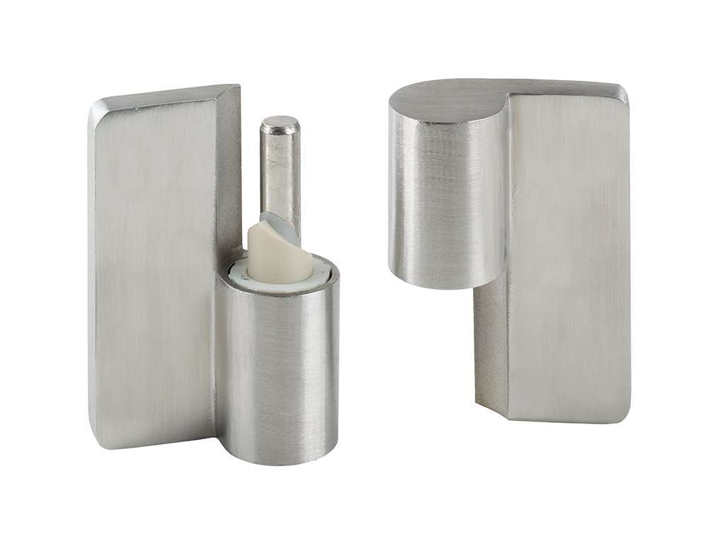 Parametre: - výška 70mm - šírka 70mm - vonkajší priemer čapu závesu 23mm - vertikálna rozteč montážnych otvorov cca 51mm - horizontálna rozteč montážnych otvorov cca 41mm - vonkajší priemer vyzávitovaných montážnych čapov 9mm - montáž na skrutky M6 TIP V prípade požiadavky na otváranie dverí do vnútra kabinky je nutné namontovať zatvárač zvnútra na dosku "zárubne" a závesy namontovať na vnútornú stranu kabinky.